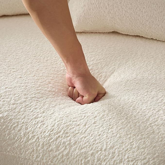 - [Plush & Supportive Comfort] Sink into the soft, high-density foam cushions that provide excellent support and long-lasting comfort. The plush bouclé fabric upholstery adds a luxurious feel, making this sofa perfect for lounging, entertaining, or unwinding after a long day.