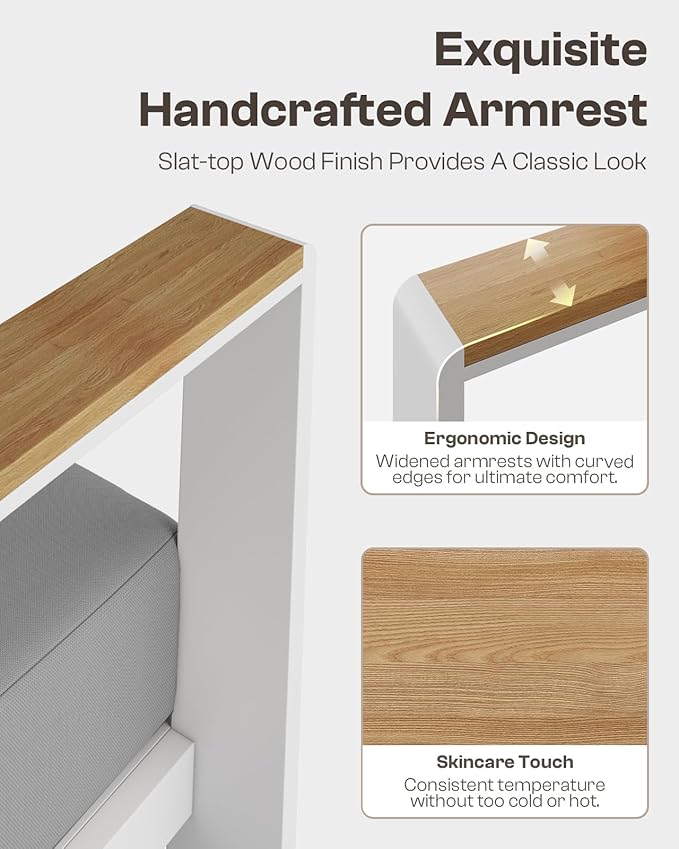 - 【Premium Materials】 The patio furniture set features a superior aluminum frame with a powder-coated finish for enhanced durability and stability, and water-resistant olefin cushions for easy maintenance and long-lasting outdoor use.