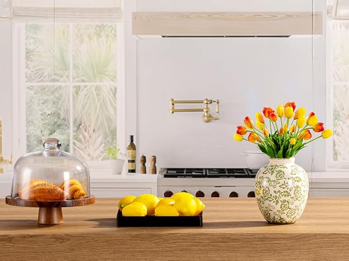 Ceramic Vintage Vase, Green Flower Decorative Vase Chinoiserie Decor Rustic Farmhouse Retro Floral Vases for Table Bookshelf Mantel Kitchen Living Room Office- 7.8inch Green