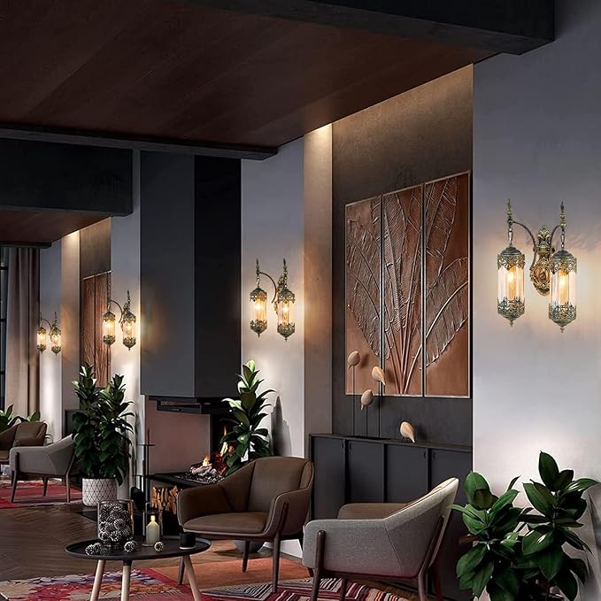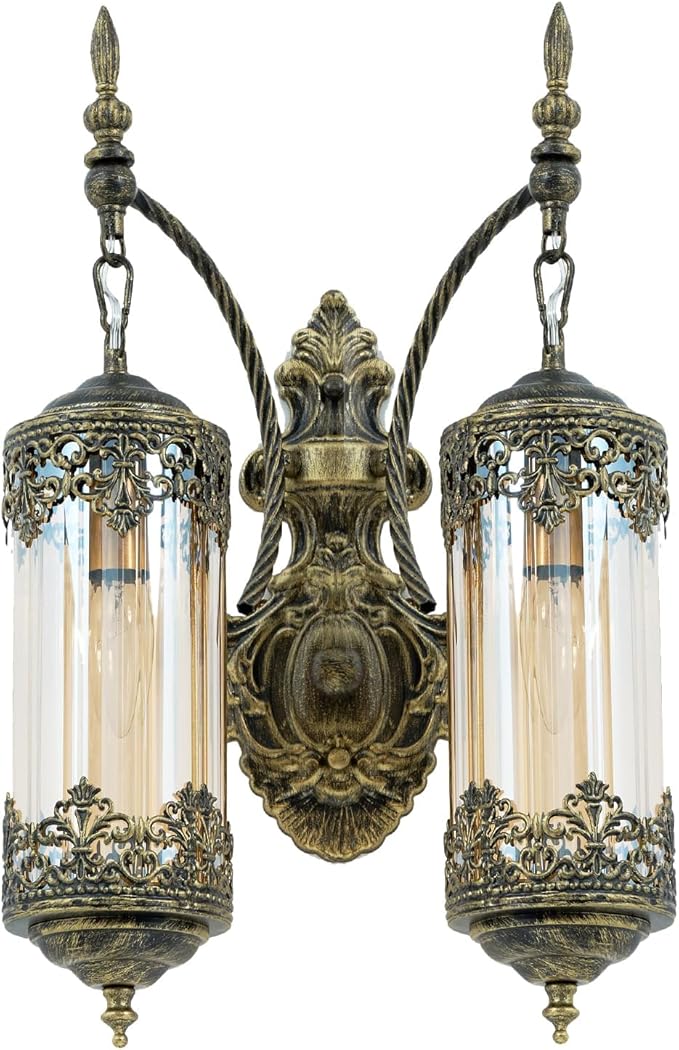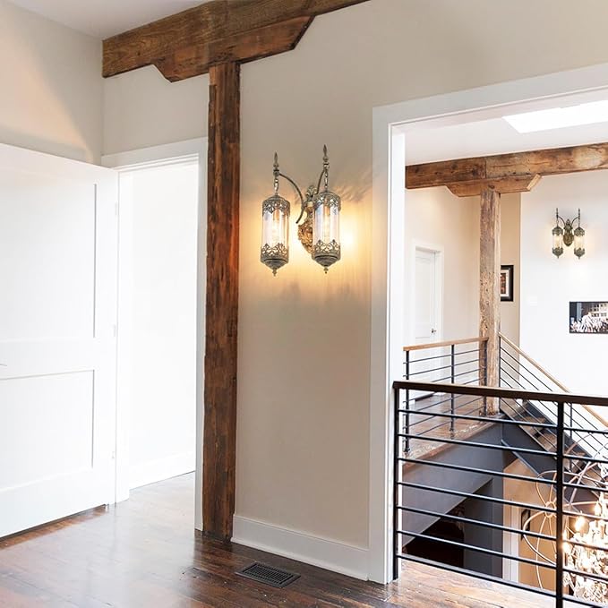 - 【E12 Bulb Base】The vintage gothic wall sconce use two E12(Max 60W) bulb. Compatible with incandescent, CFL, LED bulbs (Bulbs NOT Included), and the 2-light glass wall lamp compatible with dimmers and dimmable bulbs (additional installation required, not included)