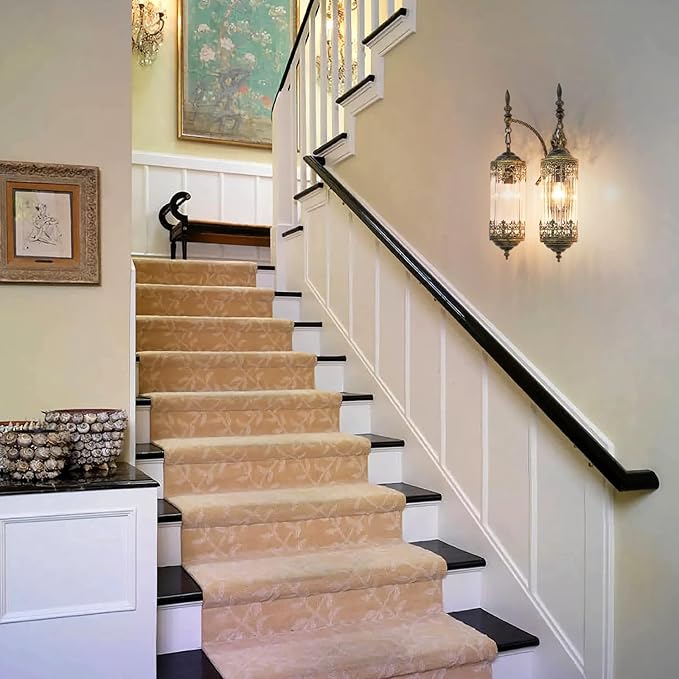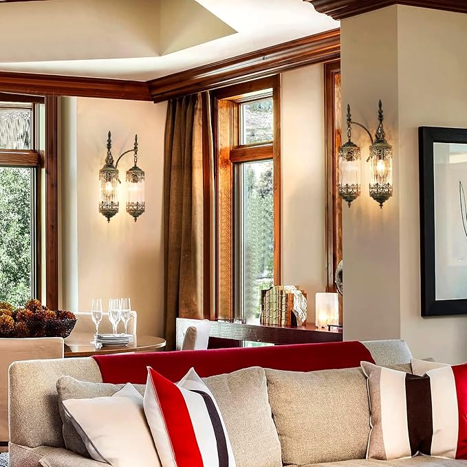 - 【E12 Bulb Base】The vintage gothic wall sconce use two E12(Max 60W) bulb. Compatible with incandescent, CFL, LED bulbs (Bulbs NOT Included), and the 2-light glass wall lamp compatible with dimmers and dimmable bulbs (additional installation required, not included)