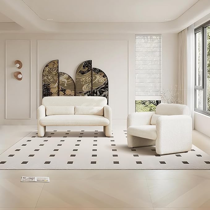 - 【Upgrade Sherpa Fabric】This upgrade sherpa fabric upholstered loveseat sofa with arms is very elegant and stylish, more smooth and comfortable. the loveseat couch blends breathable fabric and square contours, comes with excellent feeling to introduce an interesting style to a apartment, bedroom, office or small space.