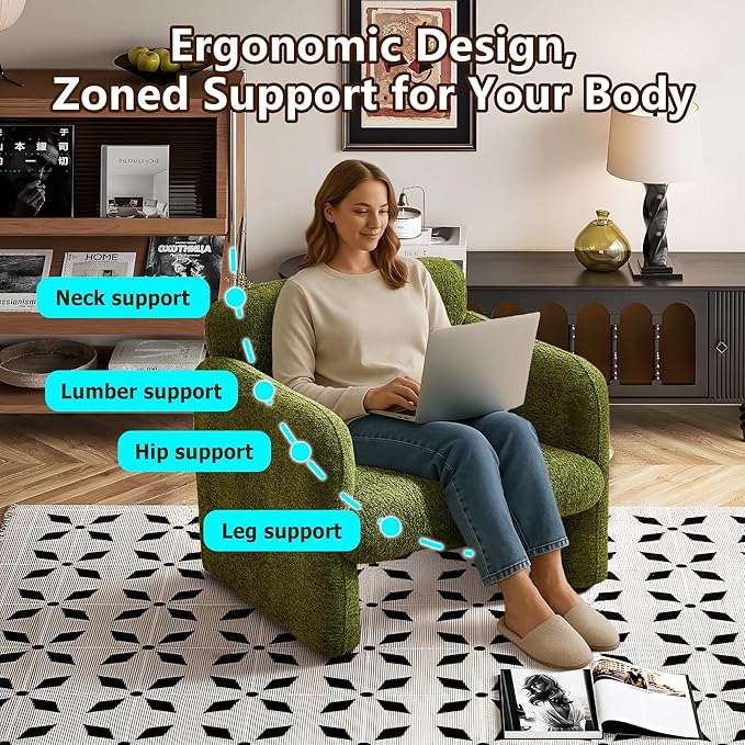 - 【Ergonomic Design】the modern accent chair come with a waist pillow, adopts the ergonomic design to fit the curve of the body and provide you with maximum comfort. it is provide a cozy seating with high breathability, a wide back support, and armrests of appropriate height, bring maximum comfort.you can lie on it to relieve your fatigue.