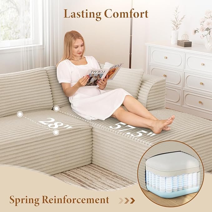 - Space-Savvy Modular Comfort: Engineered for space-conscious living, this versatile fluffy sofa adapts seamlessly to any environment—from compact apartments to family rooms and small living spaces. Its innovative legless, minimalist design fits various decor styles, making it a versatile addition to different living spaces. For convenient delivery, the foam couch ships in two separate boxes (which may arrive at different times). Your satisfaction is guaranteed—should the product not meet your expectations, our dedicated customer service team will promptly provide a satisfactory resolution