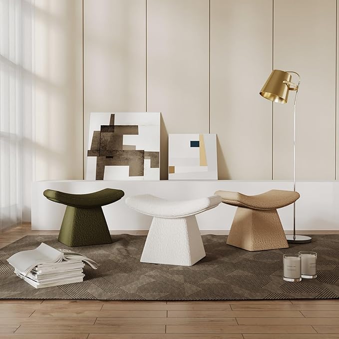 - Multi-Function Versatility – Perfect for Any Room: Adapt effortlessly to your lifestyle: use it as a foot stool in the living room, a vanity chair beside your dressing table, or a cozy seating spot in the bedroom. Its compact size and soft boucle fabric fit seamlessly into small spaces or large living areas.