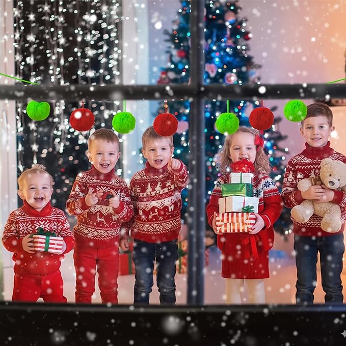 - 【12 Pieces Furry Ornaments Ready to Hang】This set includes 12 lime green and red Christmas ornaments with attached hanging strings—perfect for decorating trees, wreaths, or windows. Enough quantity to style your home or share as fun, fuzzy Christmas gifts