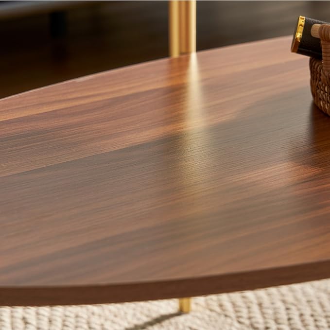 - Amazing Design: Introducing the sleek and modern coffee table that's perfect for any contemporary living space. With its minimalist design and elegant metallic legs, this table boasts a unique, tapered shape that adds a touch of fluidity and grace. The legs taper from a solid base to a thinner, more delicate point, providing sturdy support for the table's two-tiered surface.