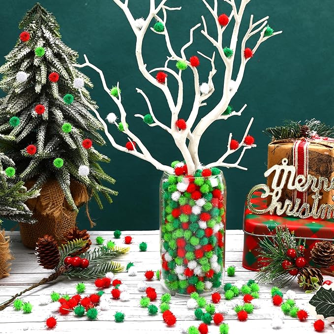 - Abundant Quantity: Contains 1000 Christmas pompoms with a diameter of 1.2 cm, each round and plump, providing an extremely ample quantity. Whether used for creating a warm and dreamy holiday home decoration, imaginative handcrafts, or lively commercial event arrangements, they can easily meet a variety of needs