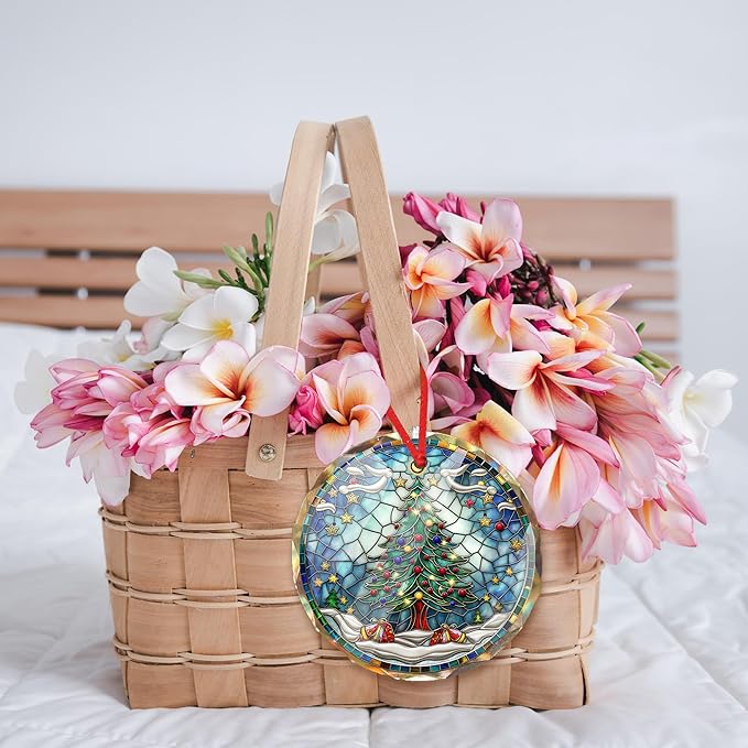 - Perfect Size: Measuring 3 x 3 x 0.12 inches, this glass hanging ornament is both lightweight and sturdy. It’s easy to hang on a Christmas tree, door handle, window.
