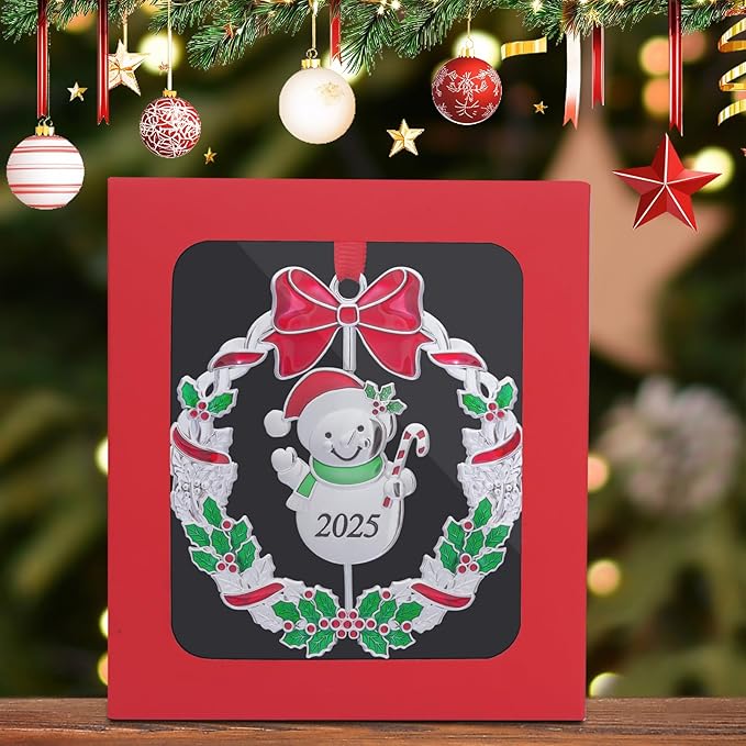 Christmas Ornaments, Metal Christmas Tree Ornaments Dated 2025 Silver Rotatable Funny Christmas Ornaments Decorative Keepsake Snowman Decoration
