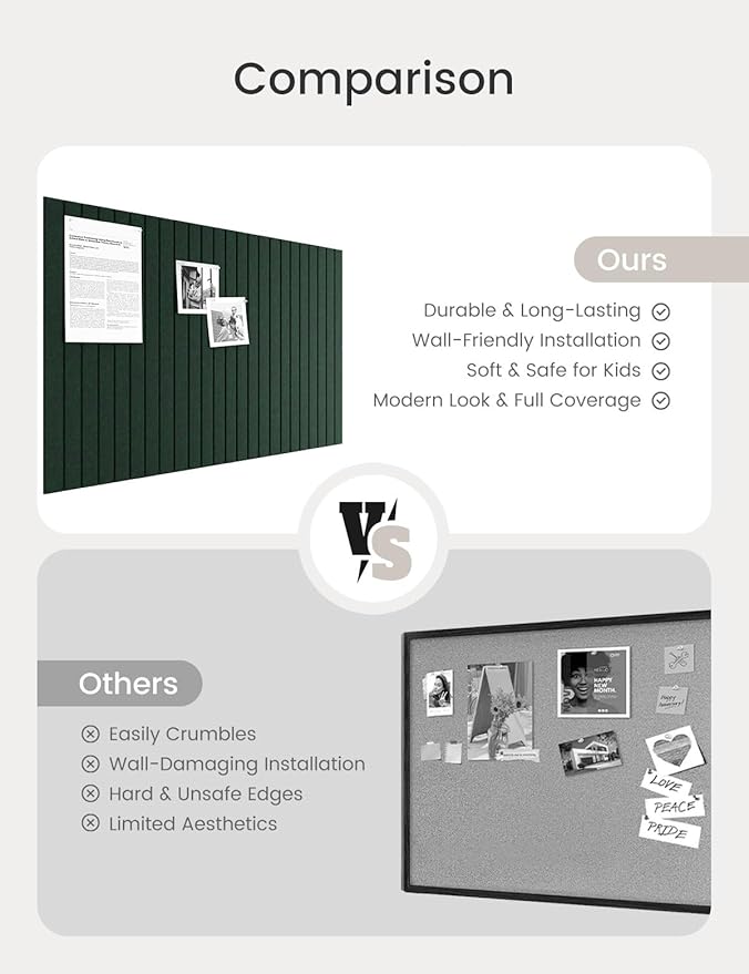 - 【Felt Bulletin Board – 6 Tiles Included】 Includes 6 felt cork boards (each 11.8" x 11.8") with 30 Pushpins that can be freely arranged into a large display board. Perfect for showcasing your schedules, ideas, and creations in home or office settings.