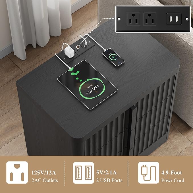 - 【Nightstand with Charging Station】This nightstand with charging station features 2 USB ports and 2 AC outlets for effortless charging. The bedside table with USB ports keeps phones and tablets within reach while reducing cable mess. A rear cable hole neatly hides wires, making your small nightstand look clean, modern, and well-organized every day