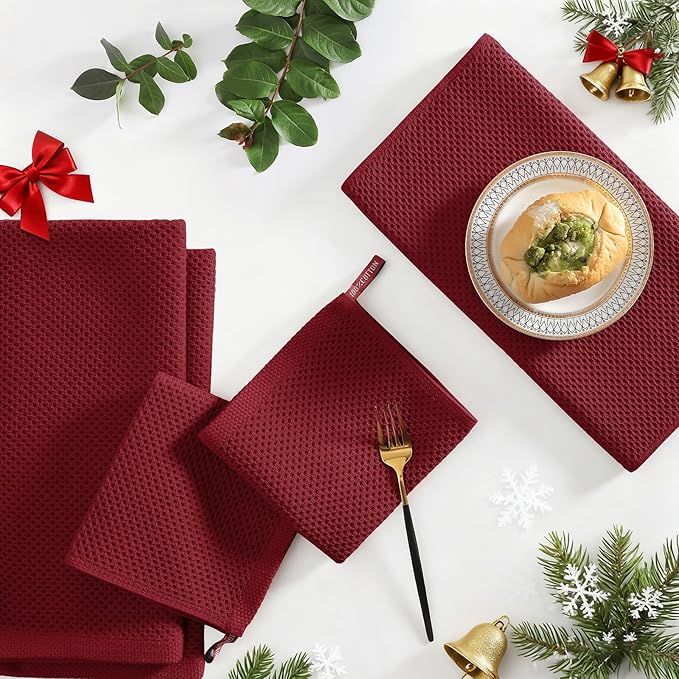 Homaxy 100% Cotton Kitchen Towels and Dishcloths Set, 12 x 12 Inches and 13 x 28 Inches, Set of 16 Bulk Kitchen Towels Set, Ultra Soft Absorbent Dish Cloths for Washing Dishes, Burgundy