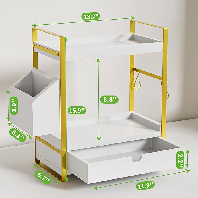 - Product size: This bathroom counter storage shelf measures 13.2"L×6.7"W×15.9"H, which can provide extra storage space for your frequently used items in a smaller space, can be used in bathroom, kitchen, living room, office, coffee bar, etc.