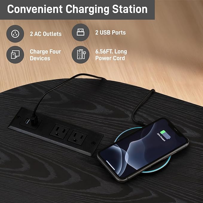 - 【Built-in Charging Station – 2 AC & 2 USB Ports】Stay powered with two AC outlets and two USB ports conveniently built into the coffee table. Includes a cable hole for neat wire management and a 6.56-ft power cord—ideal for phones, tablets, and smart devices.and more.Charge up to 4 devices at once with the integrated power strip.