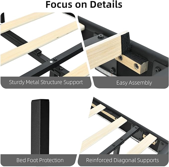 - Easy to Assemble: No box spring needed ¨C your mattress rests directly on this king size bed frame floating. Tool-free connectors and pre-configured parts simplify setup with minimal effort.