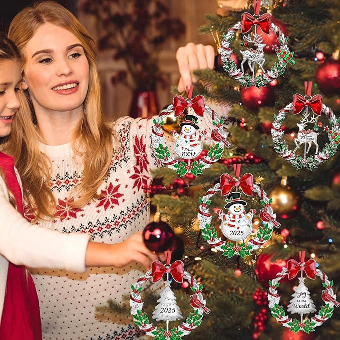 - ❤Double-sided Rotating Design: Christmas ornaments 2025 for the tree features a double-sided wreath with a rotating Christmas Snowman/Tree/Deer design. Both sides of the rotating ornament are carved with the words 2025, Let it snow/Joy to the World, respectively. With green holly and red poinsettia around the wreath, the ornaments look more exquisite and full of Christmas atmosphere