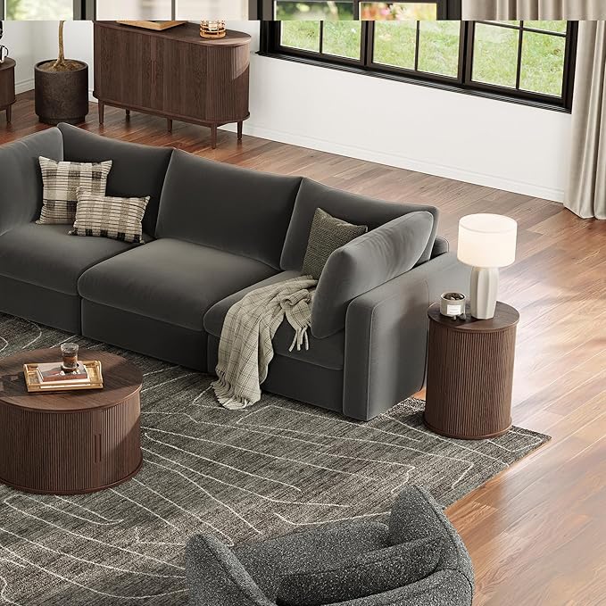 - Timeless Mid-Century Elegance – Featuring wood-textured tambour panels and grooved handles, this fluted end table captures the essence of mid-century modern design, bringing understated luxury and effortless harmony to any living space