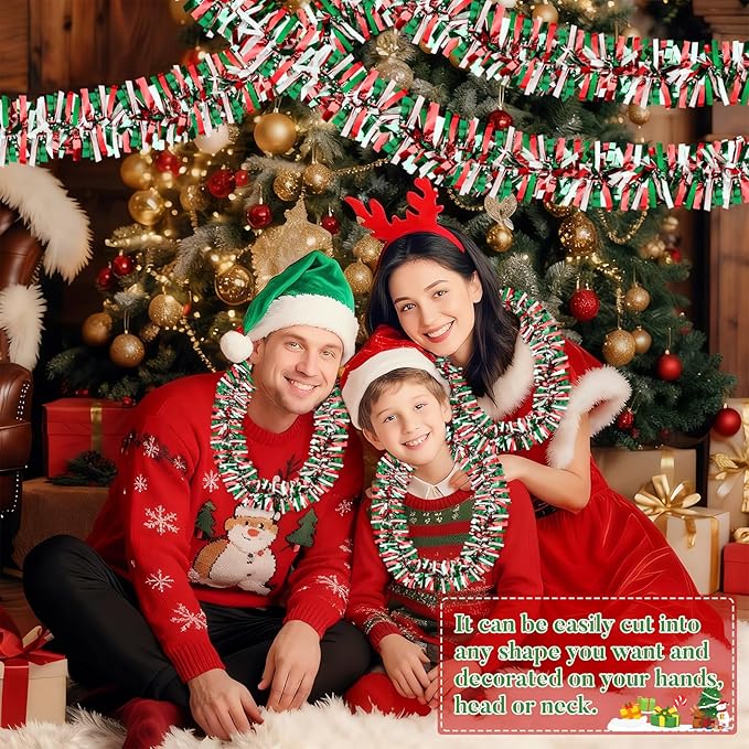 - 【Easy to Use】This Christmas tree garland is easy to use, you can hang it directly on the tree, wrap it around your staircase, or fix it firmly on the wall or window with adhesive tape. Red green and white tinsel garland is waterproof and makes an excellent Christmas decoration both indoors and outdoors. Easy to store and occupies a small area for the next holiday party