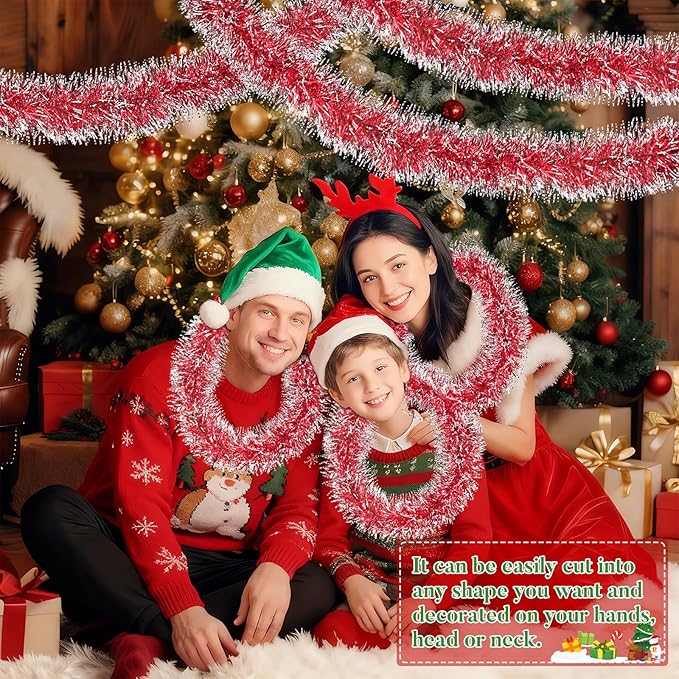 - 【Easy to Use】This Christmas red tree garland is easy to use, you can hang it directly on the tree, wrap it around your staircase, or fix it firmly on the wall or window with adhesive tape. Red tinsel garland is waterproof and makes an excellent Christmas decoration both indoors and outdoors. Easy to store and occupies a small area for the next holiday party