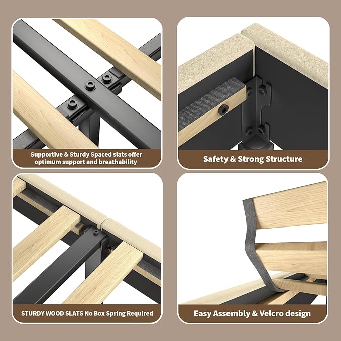 - 【Sturdy Support Modern Bed Frame】This upholstered bed frame twin delivers sturdy, quiet support—its thickened slats and heavy-duty metal structure hold up to 1200 lbs, with no box spring needed. Whether paired with memory foam or innerspring mattresses, this camas twin modernas balances strength with the softness that makes boucle so beloved.