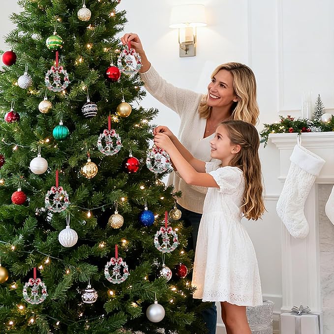 - Convenient to use - This Christmas wreath ornament comes with a red hanging rope and is beautifully packaged in a red gift box. It is a must-have for ornament collectors. It can not only decorate the Christmas tree, but also your Christmas wreath, fireplace, balcony, doors and windows, etc.