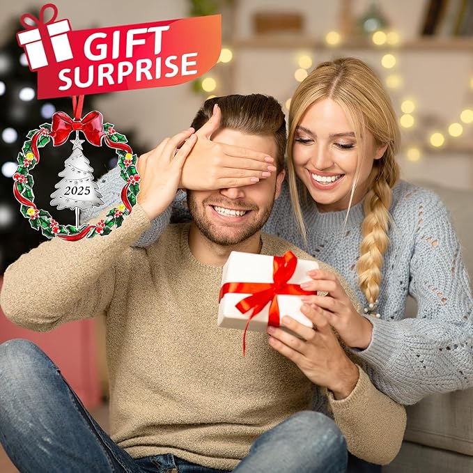- Easy to Use:The size of the 2025 ornament for Christmas trees is about 3.3*3.3 inches, had weight to it & was sparkly. Christmas ornament set comes with a red ribbon, you can hang it anywhere you want to decorate according to your needs. At the same time, itself comes with an exquisite gift box, It is very convenient whether it is given as a gift or stored