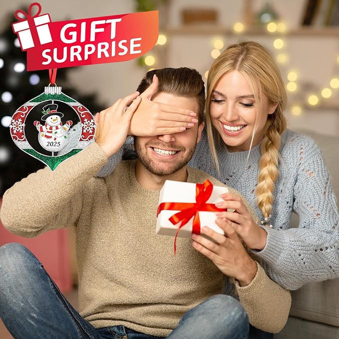 - Double-sided Rotatable Design:Both sides of the wreath portion of the christmas ornament 2025 look identical. the central tree that pivots with Joy to the World on one side and 2025 on the other.The snowman spins around when you turn it with your finger.This is one ornament that will look good no matter how it twists and turns , you won't have to keep adjusting it so the good side is facing out