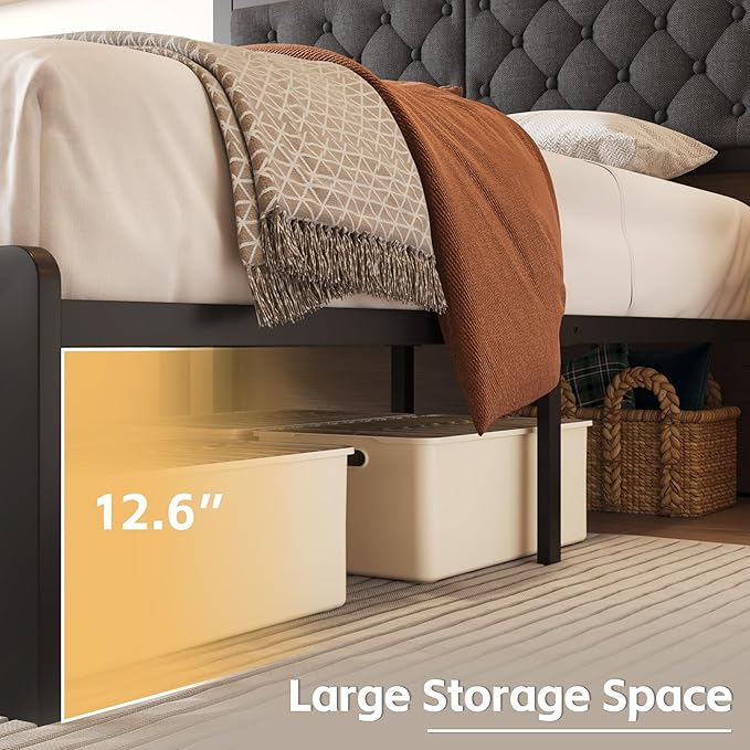 - 【Under-Bed Storage】The 12.6-inch under bed storage space of this metal bed frame can greatly improve the utilization of bedroom space. allowing you to organize and store more items while making your room look neat and orderly.The oversized space under the bed is also convenient for your cleaning.