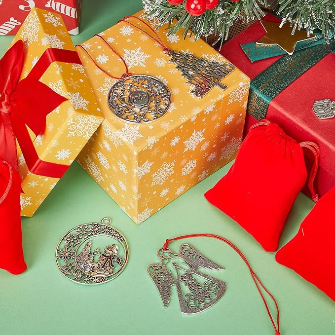 - Various Styles: you will get 8 pieces of metal Christmas ornaments and 8 storage bags, 16 pieces in total, including snowman, Christmas tree, circle ring, snowflake, angel, Christmas tree bag pendant, so you have many options to choose your favorite