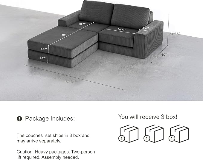 - 【Multiple Package】 --- Multiple packages may arrive separately. If you have any questions about your sectional sofa sectional or need assistance, please reach out to us as soon as possible.