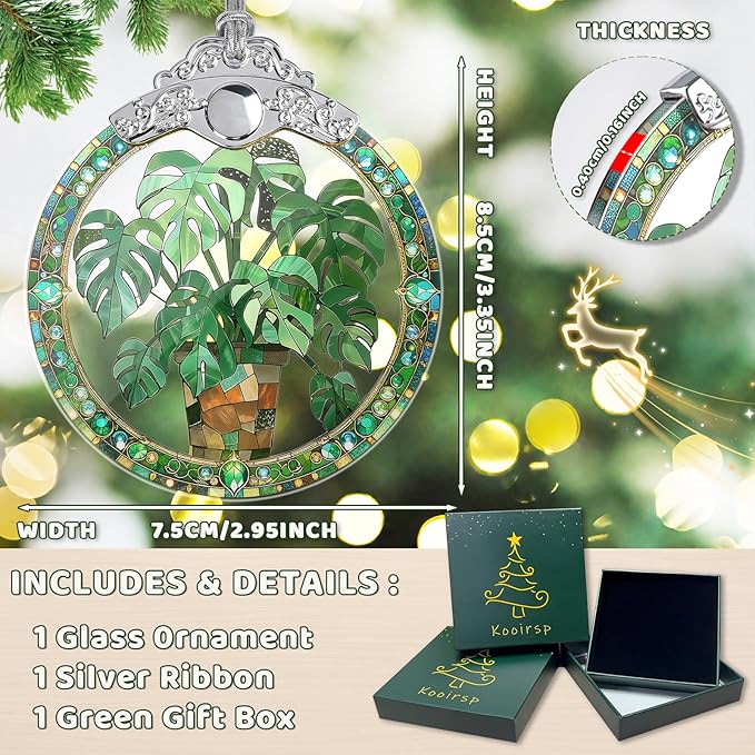 Monstera Leaf Stained Glass Christmas Ornament, Hanging Ornaments for Christmas Tree Decorations, Xmas Presents