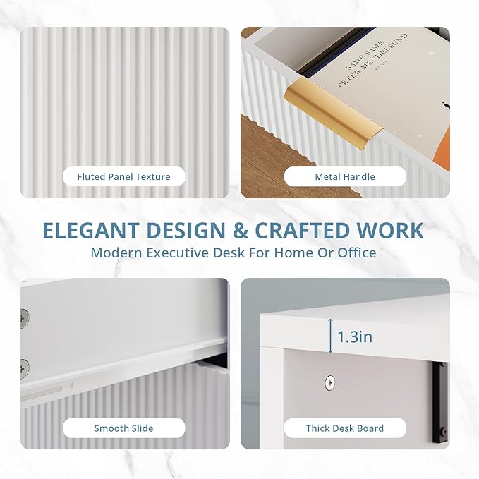 - Fluted Panel Design: Fursun modern executive desk features a unique grooved drawer panel design with refined craftsmanship and attention to detail. The elegant fluted add a touch of sophistication and contemporary style.