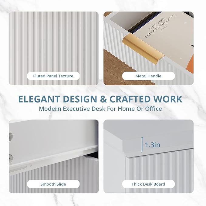 - Fluted Panel Design: Fursun modern executive desk features a unique grooved drawer panel design with refined craftsmanship and attention to detail. The elegant fluted add a touch of sophistication and contemporary style.