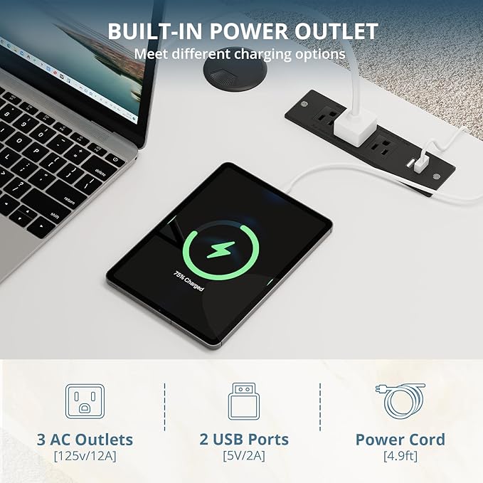 - Convenient Charging Station: This computer desk stays powered up with the built-in charging station, featuring 2 USB ports and 3 AC outlets—ideal for keeping your devices charged and cords neatly managed.