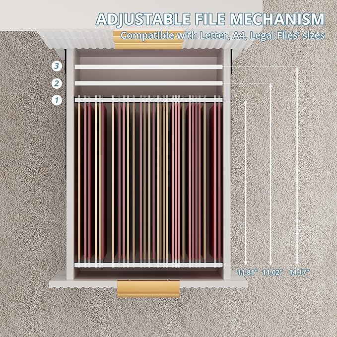 - Desk with File Cabinet: The home office desk designed modular drawer system includes 5 different drawer sizes. The bottom file drawer comes with two adjustable metal hanging bars, allowing you to store Letter, Legal, and A4 folders with ease. These storage drawers are perfect for organizing office supplies, important documents, and daily essentials.