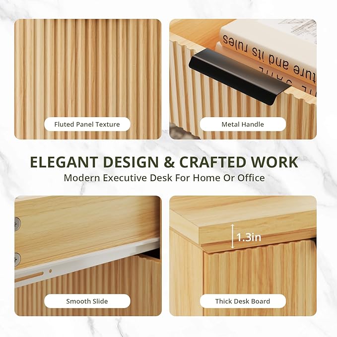 - Fluted Panel Design: Fursun modern executive desk features a unique grooved drawer panel design with refined craftsmanship and attention to detail. The elegant fluted add a touch of sophistication and contemporary style.