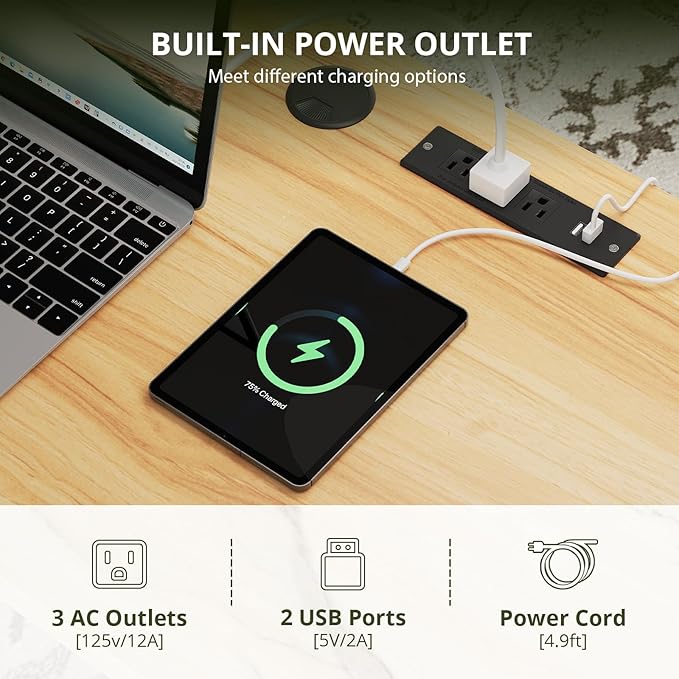 - Convenient Charging Station: This computer desk stays powered up with the built-in charging station, featuring 2 USB ports and 3 AC outlets—ideal for keeping your devices charged and cords neatly managed.