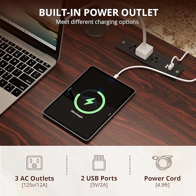 - Convenient Charging Station: This computer desk stays powered up with the built-in charging station, featuring 2 USB ports and 3 AC outlets—ideal for keeping your devices charged and cords neatly managed.