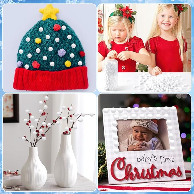 - Diameter of 0.4 inch/1 cm: This well-designed size is appropriate,mini white pom poms are suitable for all kinds of Christmas decoration scenes, whether decorate delicate Christmas ornaments, to make unique handmade ornaments, or to add bright elements to large-scale holiday decoration, white pom pom balls can be well matched