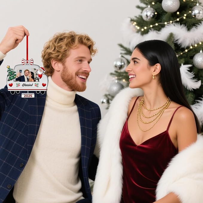 - Versatile Decor for Multiple Celebrations: A wonderfully versatile decor piece, perfect for celebrating love year-round. Use it as a classic Christmas tree ornament, a "Just Married" car hanging decoration, or as part of your wedding or engagement party decor. It's adaptable for indoor and outdoor spaces, car rearview mirrors, or window displays, effortlessly spreading joy and commemorating your union beyond just the holiday season