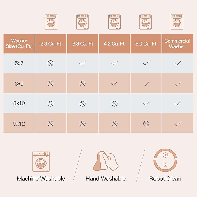 - Machine Washable Rug: This low-pile area rug resists pet hair and debris and is easy to clean—simply vacuum, sweep, or wipe between machine washes, saving you time and effort. Care Tips: Cold gentle cycle. Mild detergent only. Tumble dry low or air dry