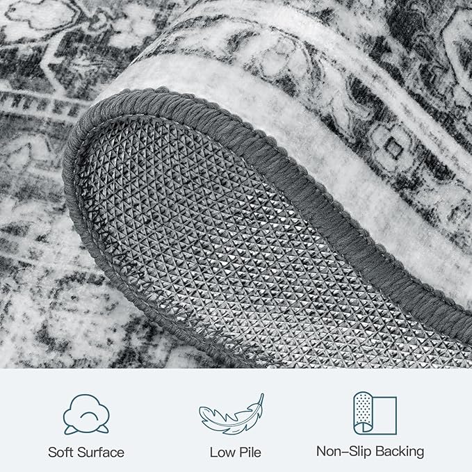 Lofus 2X 6 Runner Rug for Hallways,Grey Washable Runner Rugs with Non Slip Rubber Backing, Low Pile Soft Carpet Runner for Kitchen Bathroom Bedroom Laundry