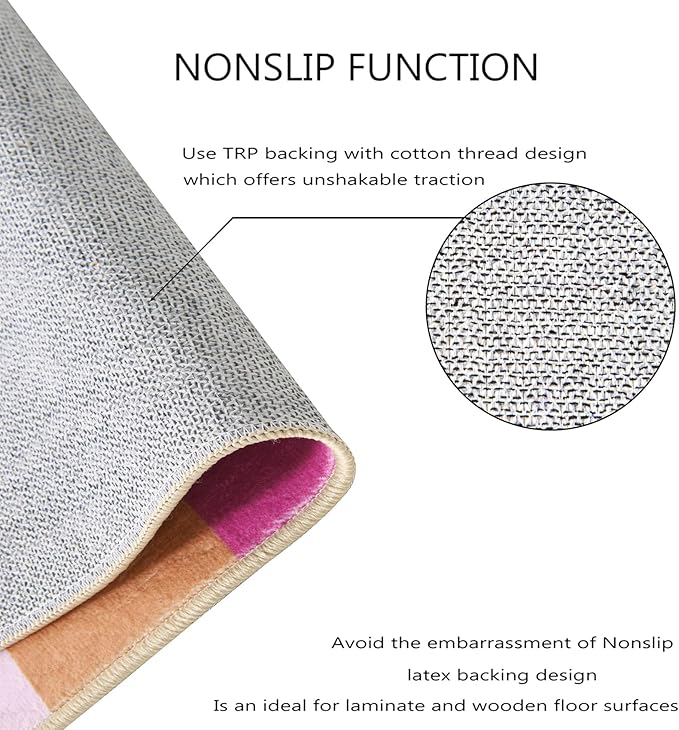 - [NON SLIP TPR BACKING] -- The non-slip TPR backing prevents slipping, tripping and holds the hippie area rug more firmly in place. This mid century modern rug used upgraded material makes mat odor-free and protect your floors from moisture and scratches