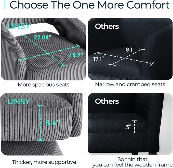 - Ergonomic Comfort: Upholstered armchair features soft corduroy fabric and 3D high-resilience foam cushion, offering a soft, resilient feel that resists flattening. The wraparound armrests, curved backrest, and 22" deepened seat provide exceptional support for your lower back, arms, and thighs, effectively alleviating fatigue during extended work or leisure periods