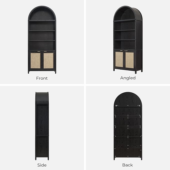 SICOTAS Book Shelf Arched Cabinet Bookshelf Arch 84.2" Tall Bookcase 5 Tier Large Bookshelves with Doors Storage Rattan Boho Wide Book Shelves Case for Living Room Kitchen Office Bedroom Library