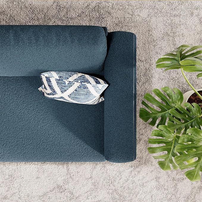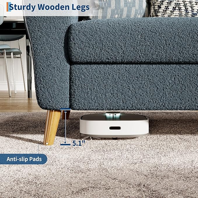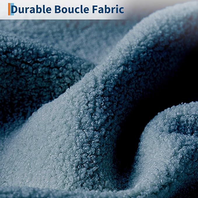 - Ergonomic Mid-Century Modern Design: Thoughtfully crafted with gently curved, streamlined armrests and an elegantly contoured silhouette, this modern couch offers ergonomic support that promotes comfortable seating posture. The chic boucle upholstery and sturdy wooden legs infuse your space with timeless mid-century charm and inviting style—perfect for relaxing in both comfort and sophistication.