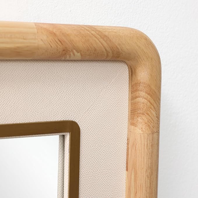 - Unique Rectangle Mirror: This rounded rectangle wall mirror features a unique frame crafted from natural rubber wood combined with PU leather and iron accents, making it a stylish addition to both contemporary and organic interiors.