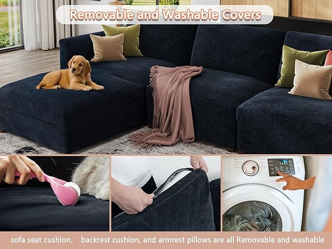- Easy to Clean and Maintain: This EASE MOOSE Modular Sectional sofa is designed for busy families, The sofa's seat cushions, backrest pillows, and armrest pillows are all Removable and washable for easy daily cleaning.The soft cushions and armrests are filled with comfortable 15D silk cotton, making them easy to fluff up, and are secured in place with Velcr