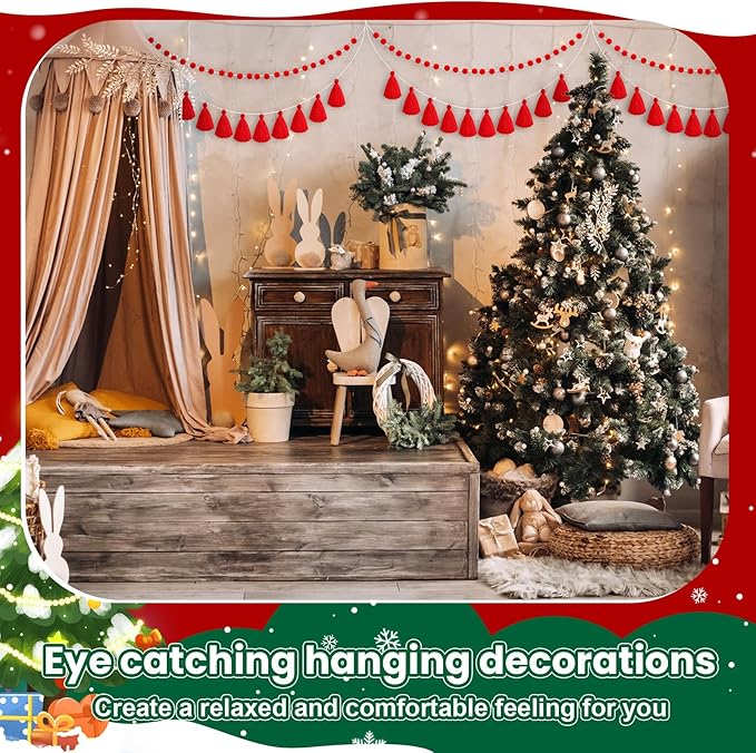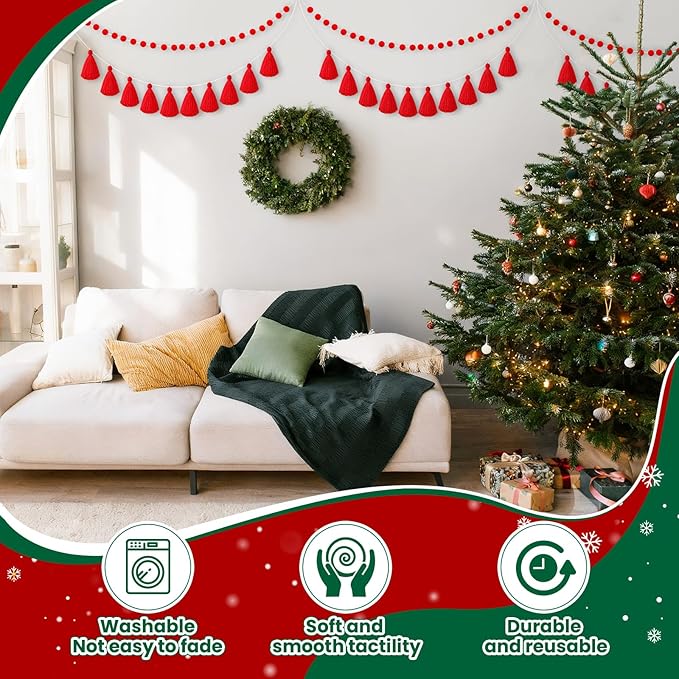 - Soft and Smooth Tactility: our red tassel garlands are made of quality cotton thread and red pom pom balls are made of felt, which has soft and smooth tactility, durable and reusable, not easy to fall off or fade, can create a relaxed and comfortable feeling for you